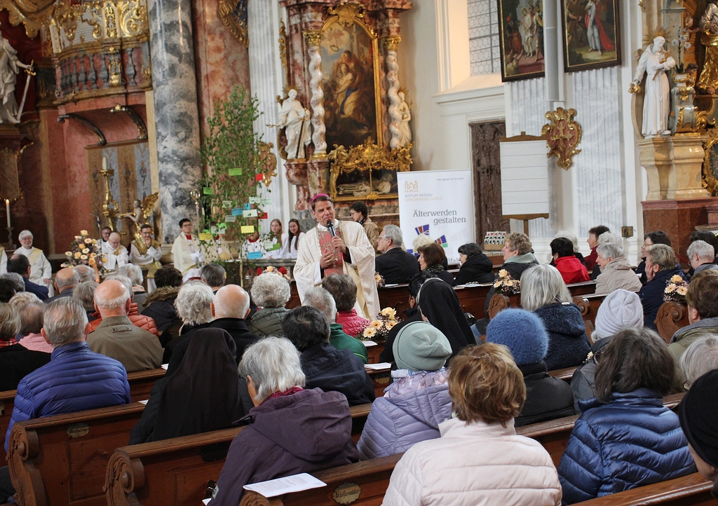 Freut Euch im Herrn zu jeder Zeit“ war das Motto des Diözesanen Seniorentags des Bistums Passau im April 2024 in Raitenhaslach bei Burghausen: nach der Coronazeit, die solch große Begegnungen schwierig bis unmöglich machte, eine Gelegenheit zur Einkehr, zum freudigen Austausch untereinander und mit Bischof Stefan Oster für rund 200 Seniorinnen und Senioren.